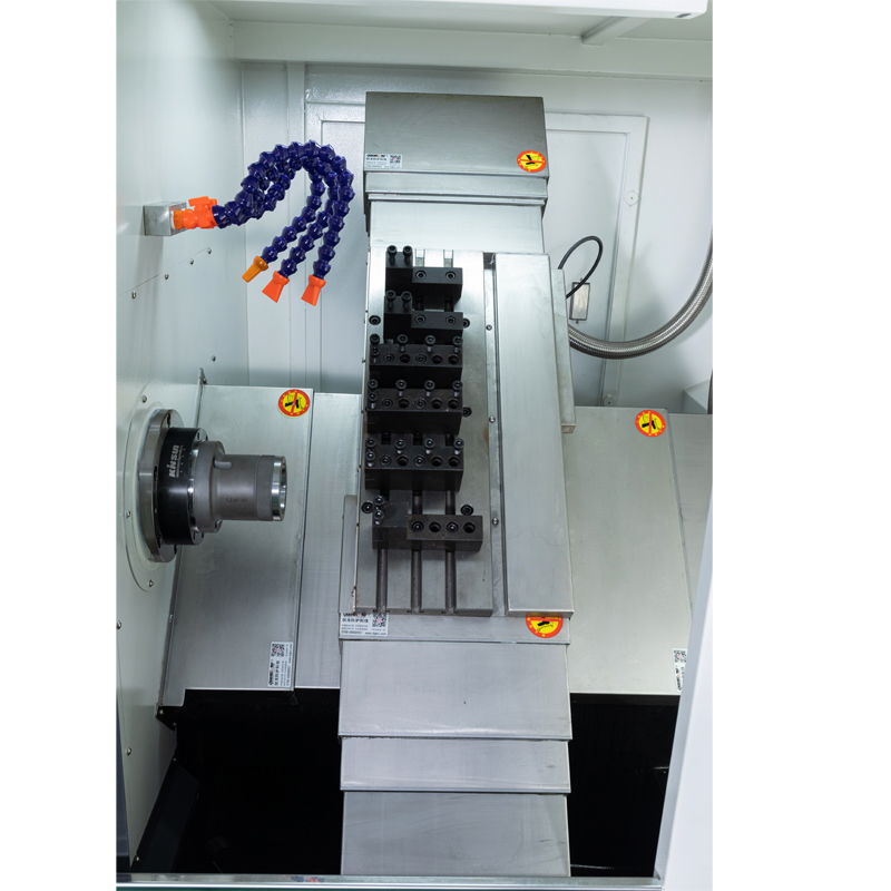 一、本機(jī)采用35°斜床結(jié)構(gòu),排屑容易,重心低,抗彎曲能力強(qiáng),部件保護(hù)良好,操作方便。