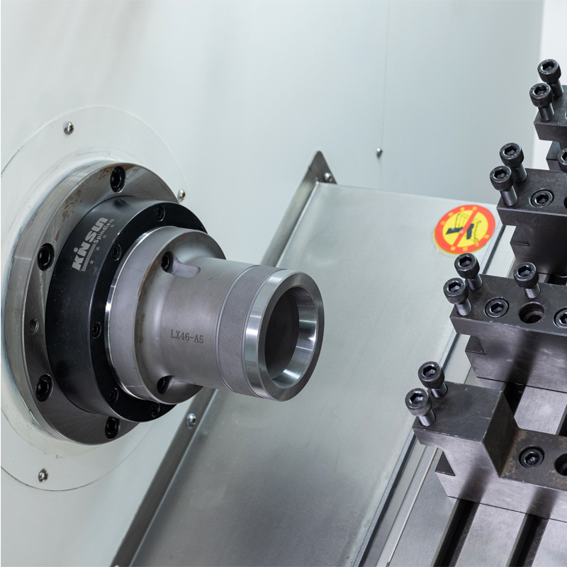 三、主軸采用帶有標(biāo)準(zhǔn)的內(nèi)錐結(jié)構(gòu)的套筒主軸、液壓卡盤(pán)、彈簧夾頭可以直接安裝,無(wú)需法蘭,可以快速進(jìn)行換裝夾頭。